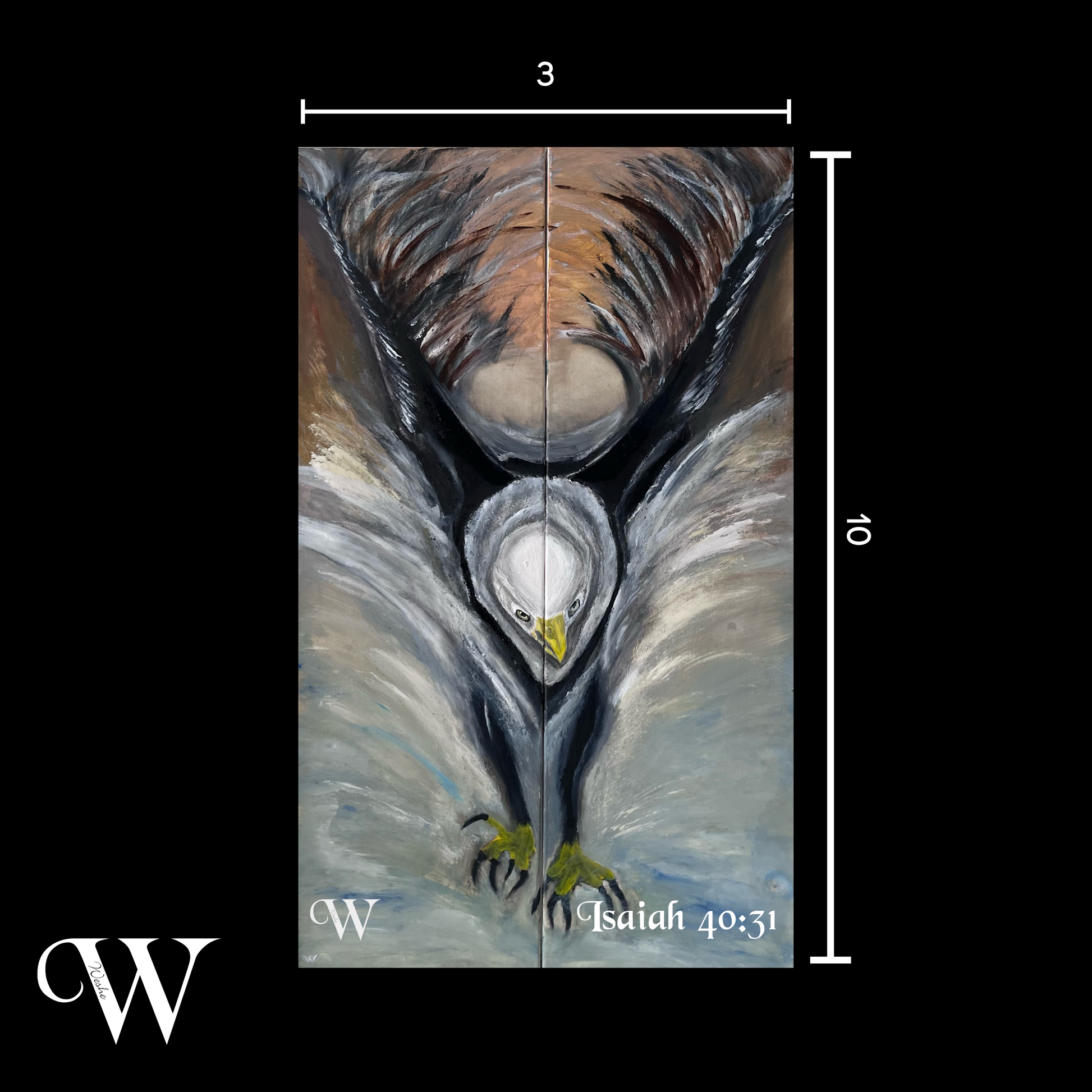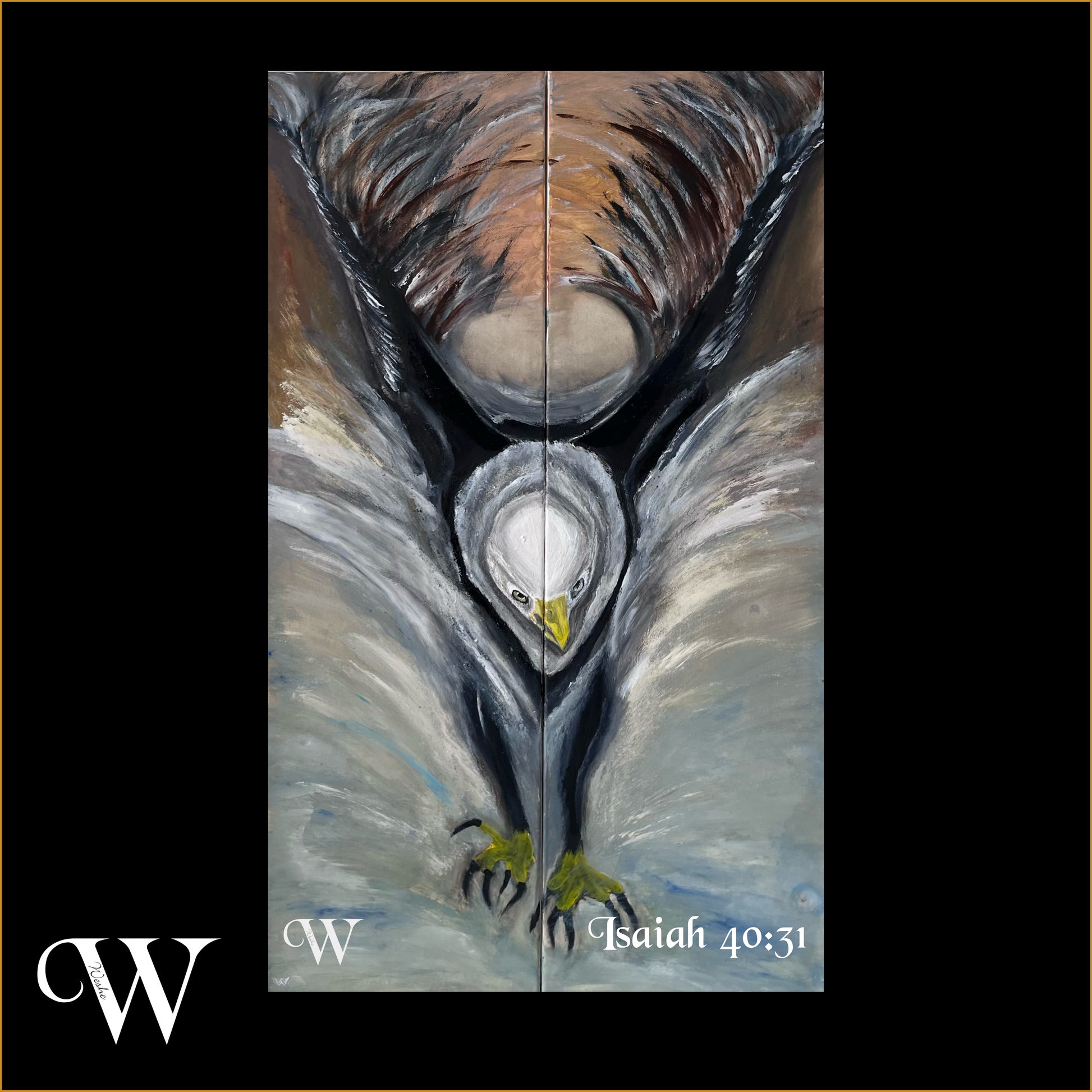 Embrace the strength and renewal symbolized by The Eagle, inspired by Isaiah 40:31. This artwork portrays the majestic eagle soaring high, embodying the power, grace, and resilience promised to those who place their trust in the Lord.